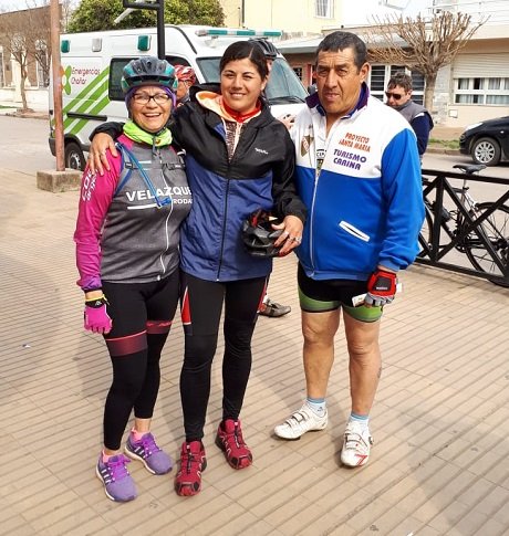 Clara Suarez, Carlos Torres, Carla Torres y Ariel Gelatti, recorrieron hoy los 70 Km del cicloturismo Chañar Ladeado - Los Quirquinchos - Chañar Ladeado por ruta.