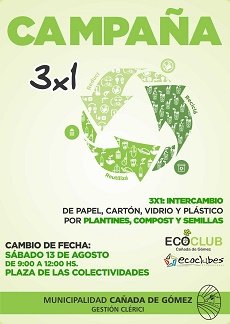 La municipalidad de Cañada de Gómez comunica que la jornada del “3 X 1” prevista para realizarse el próximo sábado ha sido reprogramada para el sábado 13 de agosto, a partir de las 9 hs. en Plaza de Colectividades.