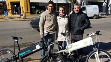 Ella es de Correa y él de Carcarañá, son pareja desde hace años. “Vinimos a Casilda a promocionar las bicicletas eléctricas con el objetivo de ayudar a reducir la huella del carbono y así cuidar el planeta”, contaron en diálogo con Radio Casilda.
