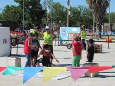 La Agencia Provincial de Seguridad Vial se ha hecho presente en la 13º Muestra Pyme Agroindustrial Las Parejas 2016 con diferentes juegos para los más pequeños diseñados y pensados para que los niños a través del juego aprendan sobre su rol como transeúntes y conductores y conozcan las diferentes señales de tránsito. Con esta finalidad se instalo un circuito vial que simula una ciudad con edificios y semáforos donde los niños podrán dar un recorrido aprendiendo sobre los diferentes usos de las vías, concientización sobre el uso del cinturón de seguridad y del casco, y los riesgos del uso del celular durante el manejo. La idea final es que los niños aprendan y que ellos mismos sean los que concienticen y enseñen a sus padres.
