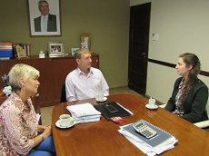 El Intendente Municipal Sr. Horacio Compagnucci acompañado por la Prof. Erica Molteni, recibió a la nueva Profesional Universitaria, la Farmacéutica Emilse Risi, egresada de la Facultad de Ciencias Bioquímicas y Farmacéutica de la Universidad Nacional de Rosario, quien muchos de sus años de estudio los cursó residiendo en la Casa del Estudiante que la Municipalidad posee en esa ciudad.