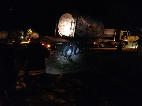 A partir de alli y ante el temor de derrame del mismo, Protección Civil puso en practica dicho protocolo. Bomberos de nuestra ciudad, Las Parejas y Armstrong, presentes en el lugar, analizan como encaminar la unidad. Una pala mecanica municipal traslada tierra a las proximidades del tanque para evitar el correr del liquido por las cunetas en caso de derrame. Policía, Personal de Transito y Personal de EPE también forman parte del operativo.