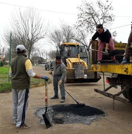 La Comuna de Bustinza, realizó trabajos de bacheo de pavimento en diferentes calles de la localidad. Para ello, adquirió asfalto en caliente que se utiliza