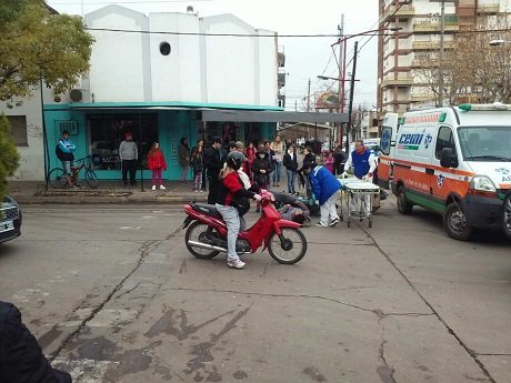El hecho ocurrió alrededor de las 11, en Ocampo y Moreno, en donde por razones que se tratan de establecer, dos motos entraron en colision. como