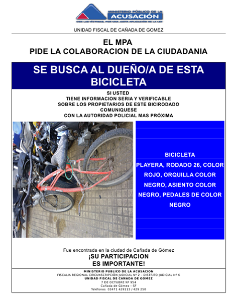 Buscan al dueño de una bicicleta