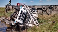 Ocurrió alrededor de las 15:50 en Km 415 de AU Cordoba Rosario, altura Gral. Roca, cuando un camión semiremolque por razones que se tratan de establecer, perdió el control y terminó volcando en la cuneta del lado sur de la traza. El chofer fue trasladado al hospital de dicha localidad tras recibir lesiones leves.