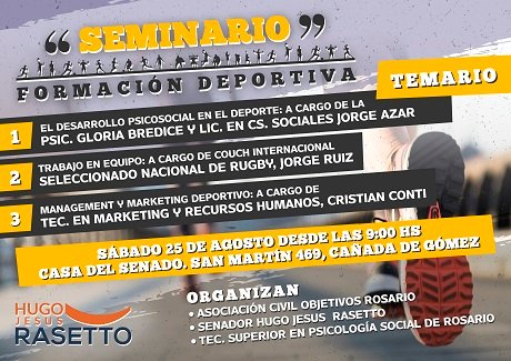 Hugo Jesús Rasetto invita a participar del primer Seminario para Clubes, con el propósito de acercar herramientas para el crecimiento y desarrollo de los clubes del Departamento Iriondo.