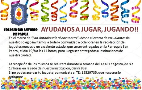 Municipalidad de Cañada de Gomez, informa que debido a inclemencias de tiempo, la jornada de hoy prevista en Plazoleta La Lomita por el "Mes de los Niños