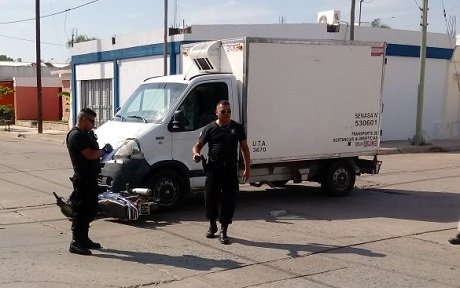 Ocurrió en 9 de Julio y Oroño, cuando por razones que se tratan de establecer, entraron en colision un camioncito de reparto y una moto. Como consecuencia, una femenina de alrededor de 40 años fue trasladada por Cemi.
