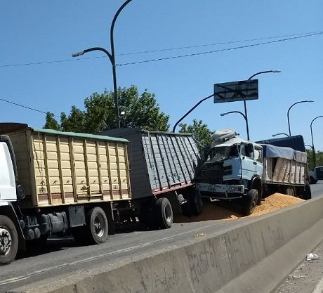 Ocurrió alrededor de las 15 en Pellegrini casi Provincias Unidas y en la modalidad de choque de alcance entre al menos dos camiones con cereal, el cual quedó derramado en la cinta asfaltica. El conductor habría sufrido heridas leves. El ingreso a Rosario estaba cortado, por lo que desviaban en circunvalación hacia calle Córdoba.