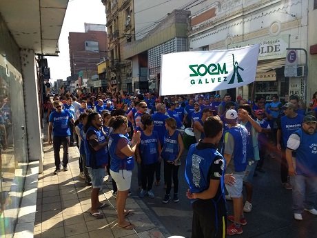 Miembros de diferentes gremios, entre ellos Festram y Amsafe de Cañada de Gómez, participan de la movilización y acto a la ciudad de Santa Fe, en alrededores de Casa de Gobierno y que tendrá como oradores a Claudio Leoni de FESTRAM, Sonia Alesso de AMSAFE y Patricia Fournier por SADOP