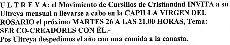 Sábado 23 de diciembre, Misa normal en todas las capillas y parroquia. Horarios habituales.