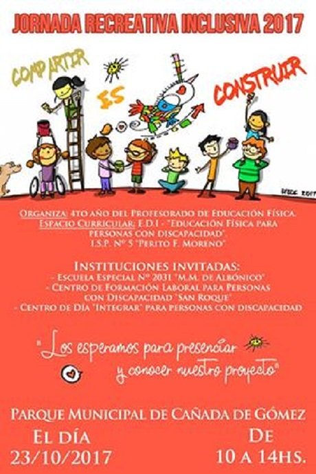 Se realizará este lunes e invitan a los vecinos en general a presenciar la misma. Se trata de una jornada organizada por los Alumnos de cuarto años del Instituto del Profesorado Nº 5 de la carrera Educacion Fisica, desde el espacio curricular E.D.I "Educacion Fisica para personas con Discapacidad".