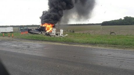 Choque e incendio en Ruta 91 entre Bustinza y Totoras