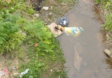 Bomberos de Tortugas rescataron un perro que habia sido arrojado vivo dentro de una bolsa a un zanjón