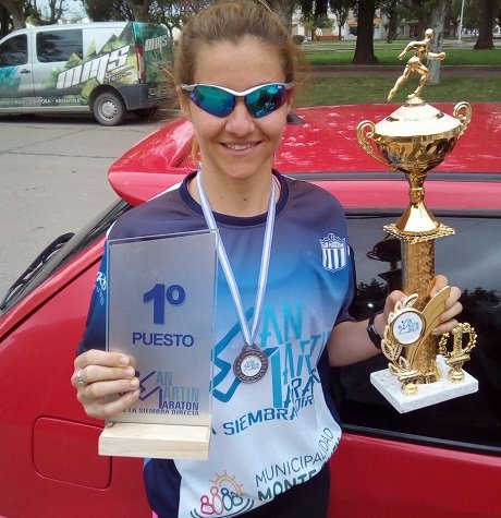 La atleta Maria Victoria Gonzalez, se impuso en la general de los 10K de la maraton de la Siembra Directa, realizada este domingo en Monte Buey -Cordoba-.