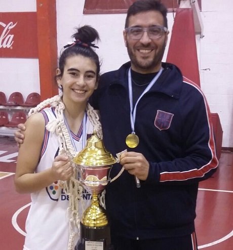 Ruben Scaltriti de Adeo -cuerpo tecnico- y Valentina Gonzalez -jugadora de Alba-, resultaron campeones argentinos en U17 basquet femenino jugado en Trelew, tras vencer en la final a Mendoza por 68 a 52, resultando además invictos....!
