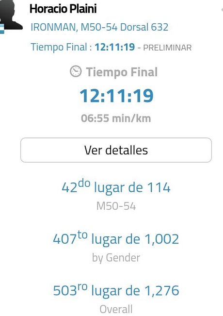 "Me fue re-bien... hice la mejor marca personal de los 6 ironman que corri hasta el momento, estoy re-contento... muy dura la carrera... mucho calor, no tanto viento... hermosa la natacion, en momentos nadando entre peces de colores...! expresó Horacio a nuestra redacción.
