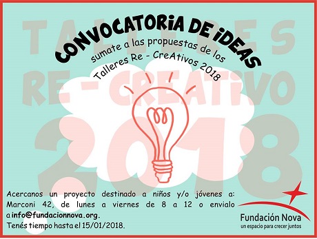 Fundación Nova informa que está abierta la convocatoria para presentar proyectos de trabajo recreativos bajo la modalidad de taller.