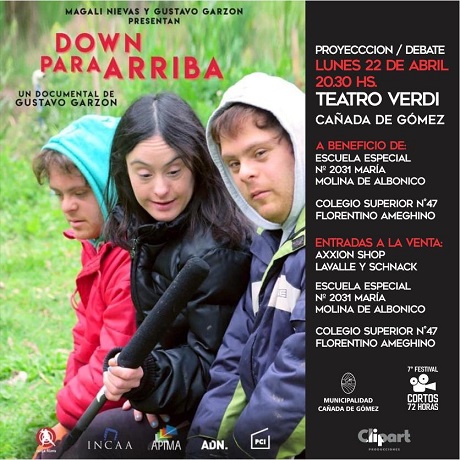 El lunes 22 de abril a las 20 y 30 hs en el Teatro Verdi proyección de la película DOWN PARA ARRIBA y al terminar la misma, charla con el Director Gustavo Garzón, con dos moderadores, uno del Colegio Nacional y otro de la Escuela Especial.