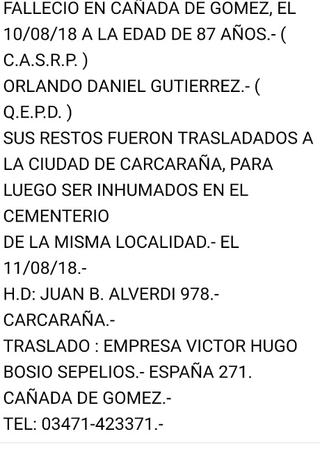 Fallecimiento en Carcaraña