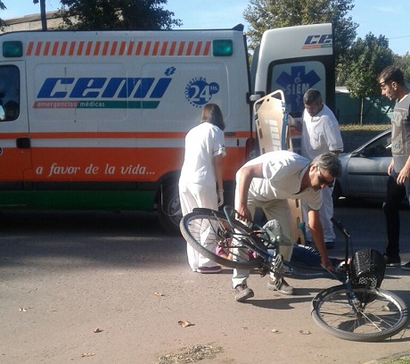 Fue alrededor de las 9:15, donde entraron en colision una bicicleta y un auto. La mujer que se conducia en la bicicleta resulto con heridas leves y estaba siendo atendida por Cemi