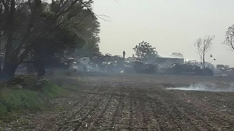 El siniestro se inció aproximadamente a las 14,30 y tomó parte del sector del deposito de autos del lugar. Acudieron Bomberos de Marcos Juarez, Gral. Roca y Tortugas. Alrededor de las 17:30 tal nos informan desde la institución santafesina, estaría controlado. El fuerte viento jugó en contra también en ese lugar.