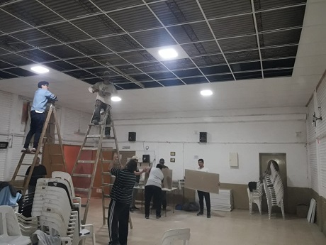 Nos referimos al grupo de trabajo de Vecinal La Usina quienes por estos días, terminan los trabajos de colocación de cielo raso en su SUM.