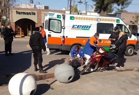 Ocurrió alrededor de las 10 en donde por razones que se tratan de establecer entraron en colisión un auto y una moto. Este último rodado era conducido por una mujer de alrededor de 35 años quién iba junto a menor, siendo ambos asistidos por Cemi y trasladados al hospital.