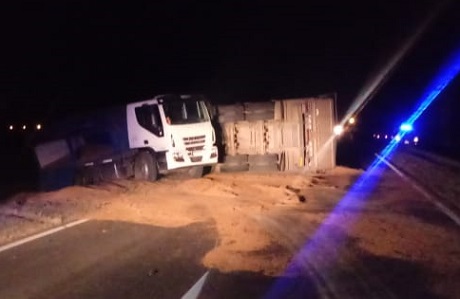 El hecho ocurrió alrededor de las 18:20, cuando por razones que se tratan de establecer, entraron en colisión un camión cargado de cereal y una camioneta.