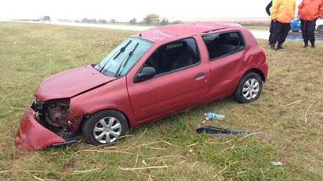 El mismo se produjo cerca de las 07,30 en el Km 391 de la autopista mano Cordoba - Rosario, donde un Renault Clio por causas que se tratan de establecer volco en solitario, en el mismo viajaban 2 personas mayores de edad