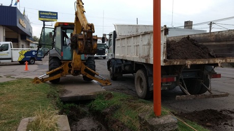 Con aporte del municipio en maquinaria se interviene en Camino a Colonia Médici con tareas de zanjeo y limpieza de alcantarillas.