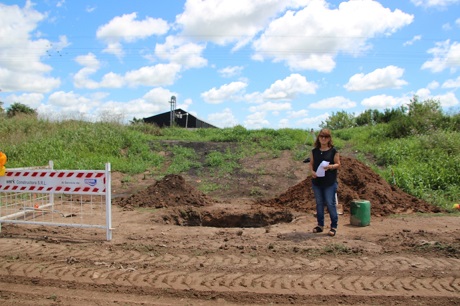 La secretaria de Obras Públicas recorrió tareas del cruce bajo vías de cañería de descarga de la estación elevadora que está ubicada en la zona norte de la ciudad.