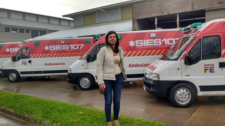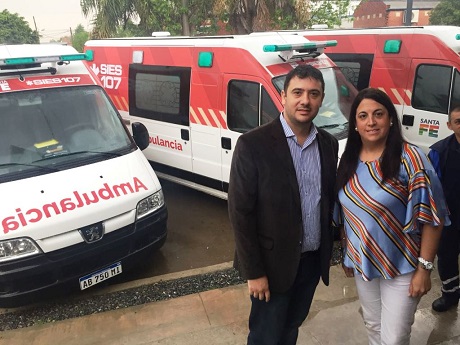 La directora del Hospital San José, Verónica Mosconi, junto al concejal Matías Chale, recibieron esta mañana una nueva ambulancia totalmente equipada para cubrir las necesidades de salud en la ciudad y la región, a través de una inversión de 1,5 millones de pesos.