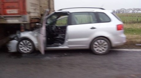 Ocurrió en la mañana de hoy en Km 371 de AU, entre Cañada y Armstrong, en donde un coche en que viajaba una familia, oriunda de La Rioja, por